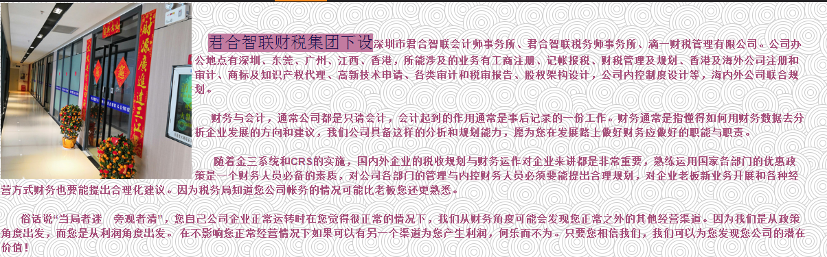 深圳君合智聯稅務師(shī)事(shì)務所